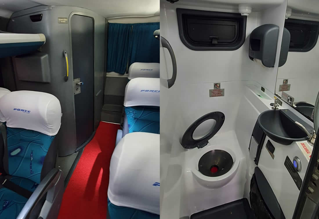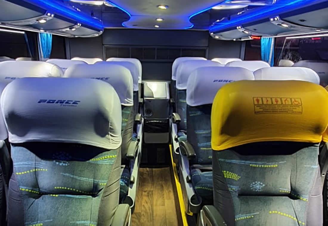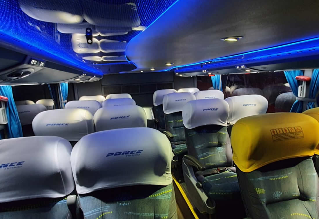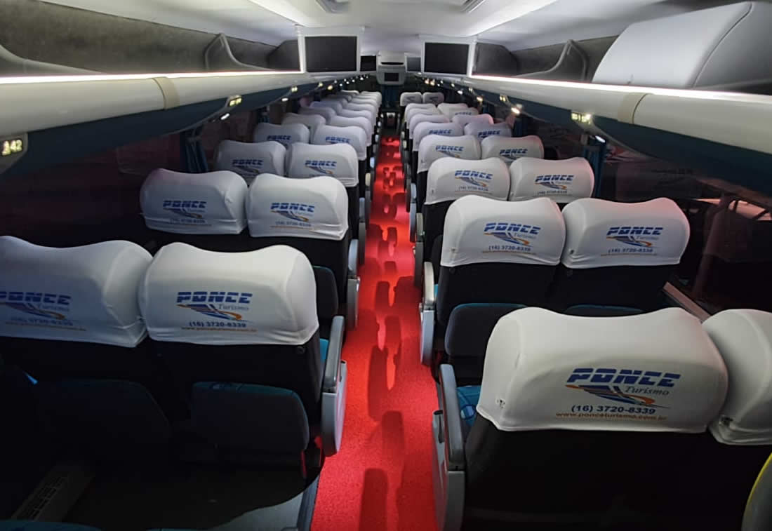 -44 POLTRONAS SEMI LEITO PISO SUPERIOR, -16 POLTRONAS SEMI LEITO PISO INFERIOR, -2 BANHEIROS, SENDO UM EM CADA PISO, -2 FRIGOBARES, - TVS DVD, -SOM, -MICROFONE, -TOMADAS PARA CARREGAR CELULAR, -WI-FI ( CONSULTE DISPONIBILIDADE ).