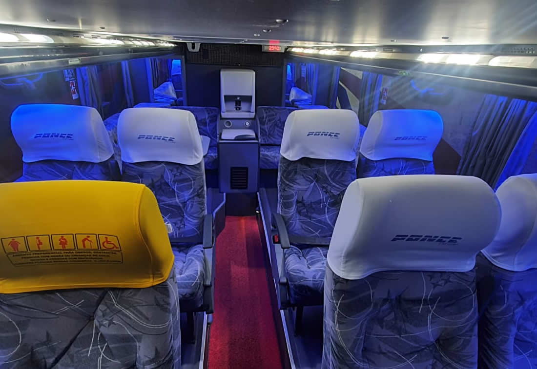 -44 POLTRONAS SEMI LEITO PISO SUPERIOR, -08 POLTRONAS SEMI LEITO PISO INFERIOR, -1 BANHEIROS, -2 FRIGOBAR, -TVS DVD, -SOM, -MICROFONE, -TOMADAS PARA CARREGAR CELULAR, -WI-FI ( CONSULTE DISPONIBILIDADE ).